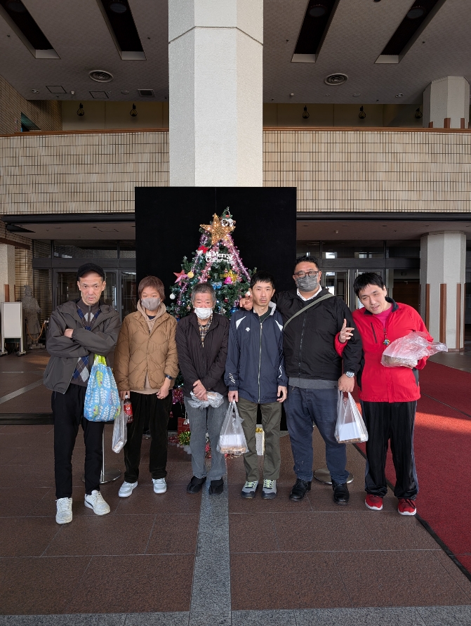 TELLs+京都八幡主催のクリスマス会に参加しました 2025年12月24日 TELLs+京都八幡主催のクリスマス会に参加しました。 ビンゴ大会や人形劇等を楽しみました。 帰りにみんなで記念写真。 お土産も頂き心がはずむひと時でした。